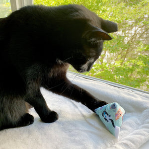 Six years ago, I left an unsatisfying tech career to spread joy through the love of cats. Inspired by my rescue kitties, Chester and Pearl, I now spend my days sewing cat toys that provide an outlet for kitties' natural hunting instincts and creating cute cat art that bring joy to both you and your kitty.