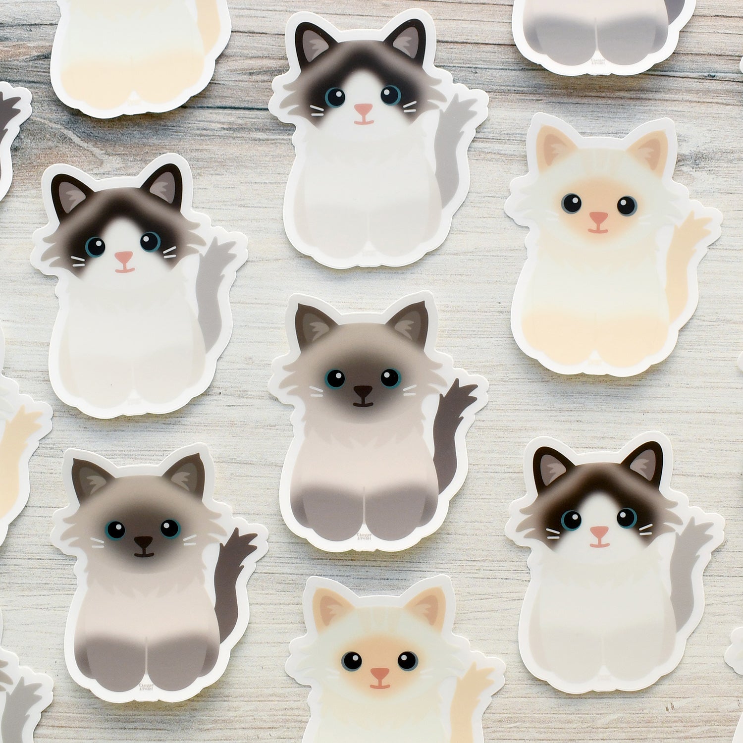 Bring a cute reminder of your kitty with your everywhere with a thick, durable vinyl Ragdoll cat sticker!